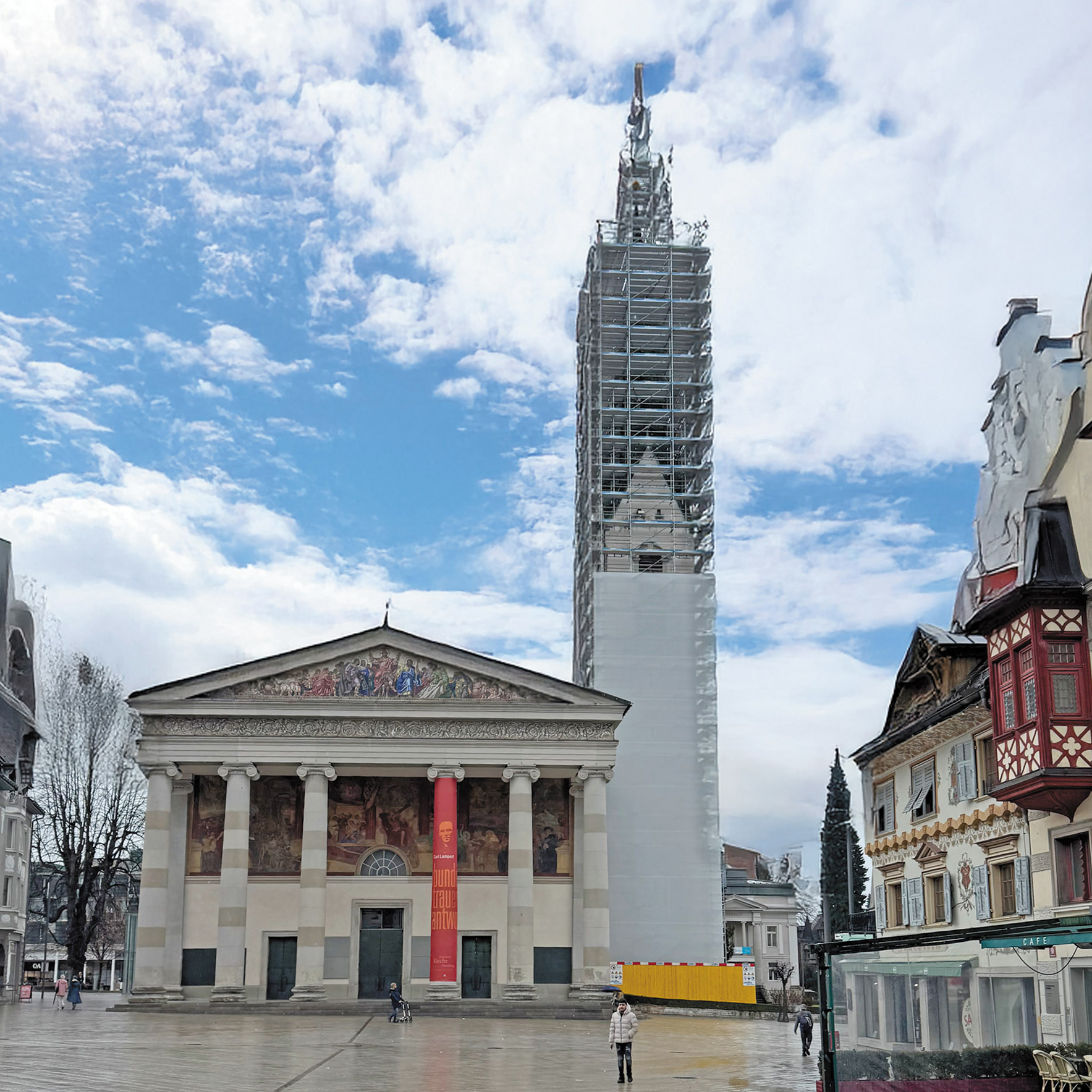 Das Dornbirner Wahrzeichen, die St. Martinskirche, ist heuer ebenfalls Gegenstand baulicher Maßnahmen. Davon betroffen ist der Kirchturm, der den Marktplatz mit 60 Metern überragt. Die umfangreiche Turmsanierung, die von Karl-Heinz Summer geleitet wird, umfasst unter anderem die Erneuerung von Teilen des Dachstuhls, Putzverbesserungen sowie die Neueindeckung. „Besonderes Augenmerk legen wir dabei darauf, das markante Bild der grünen Ziegel zu erhalten“, informiert der Baumeister.