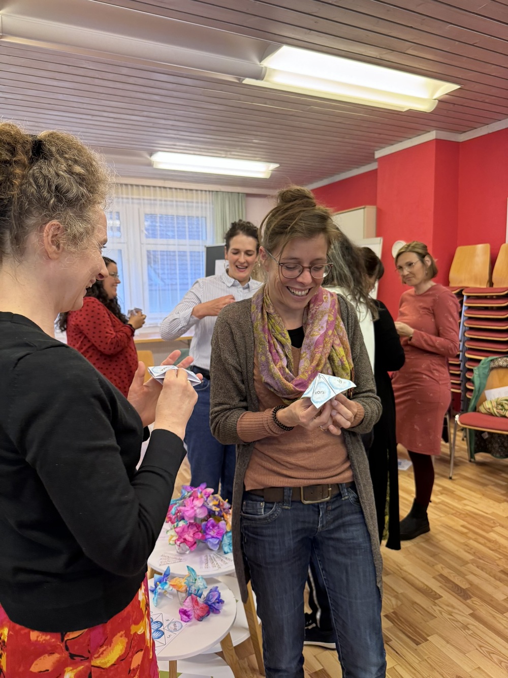 Zum Ausklang wurde es persönlich und stärkend: Jede Teilnehmerin überlegte, was sie aus dem Abend mitnimmt - für sich selbst und für ihre Arbeit in ihrer Gruppe. Welche Idee darf aufblühen? Was  darf losgelassen werden?