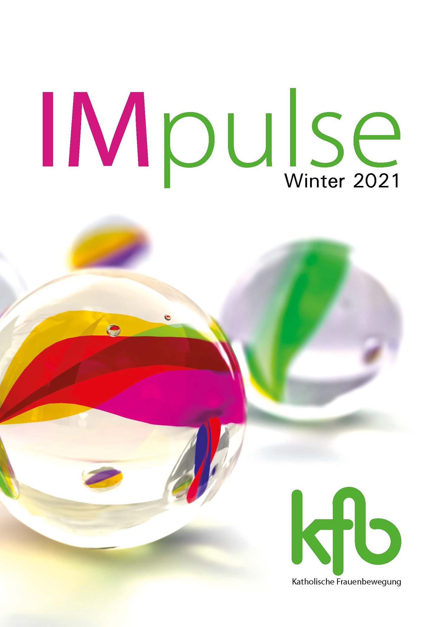 Zweimal im Jahr erscheint „IMpulse“ – die Frauenzeitschrift der Katholischen Frauenbewegung. Die „Impulse“ informieren über die Aktivitäten der kfb, bieten Rückblicke, bündeln Bildungsangebote, Veranstaltungen und Termine. Auch Inspirationen für Rundenvorschläge und Liturgie finden sich in den „Impulsen“.