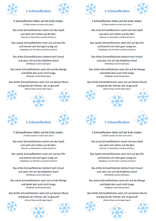 Fingerspiel - 5 Schneeflocken A4